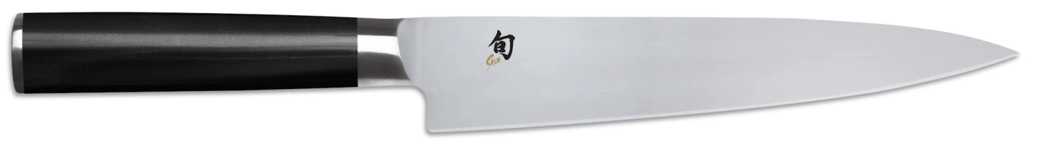 Die Shun Classic Serie vereint jahrhundertealte, japanische Samurai Schmiedekunst mit modernen und technisch ausgereiften Fertigungsverfahren unserer Zeit. Als Ergebnis prĂ€sentiert sich eine ĂŒberaus hochwertige Damastmesser Serie, die bis ins kleinste Detail ausgereift und konsequent auf bestĂ€ndige SchĂ€rfe ausgerichtet wurde. Die Messer sind damit hervorragend fĂŒr den professionellen Gebrauch geeignet. Ăsthetisch schön sind die Shun Classic Klingen wegen ihres charakteristischen, seidenmatten Musters des Damaszener-Stahlverbunds aus 32 Lagen. In Kombination mit dem eleganten, schlank zulaufenden Griff aus schwarzem Pakkaholz, ergibt sich ein Ă€sthetisches Gesamtkonzept mit grundlegendem Anspruch an QualitĂ€t und Funktion.