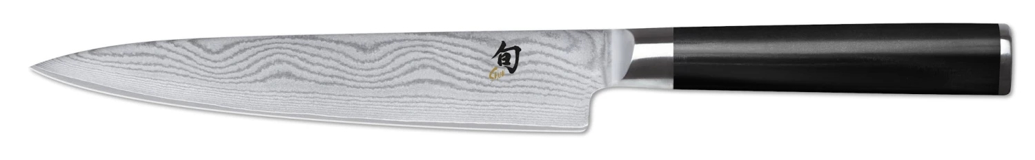Die Shun Classic Serie vereint jahrhundertealte, japanische Samurai Schmiedekunst mit modernen und technisch ausgereiften Fertigungsverfahren unserer Zeit. Als Ergebnis präsentiert sich eine überaus hochwertige Damastmesser Serie, die bis ins kleinste Detail ausgereift und konsequent auf beständige Schärfe ausgerichtet wurde. Die Messer sind damit hervorragend für den professionellen Gebrauch geeignet. Ästhetisch schön sind die Shun Classic Klingen wegen ihres charakteristischen, seidenmatten Musters des Damaszener-Stahlverbunds aus 32 Lagen. In Kombination mit dem eleganten, schlank zulaufenden Griff aus schwarzem Pakkaholz, ergibt sich ein ästhetisches Gesamtkonzept mit grundlegendem Anspruch an Qualität und Funktion.