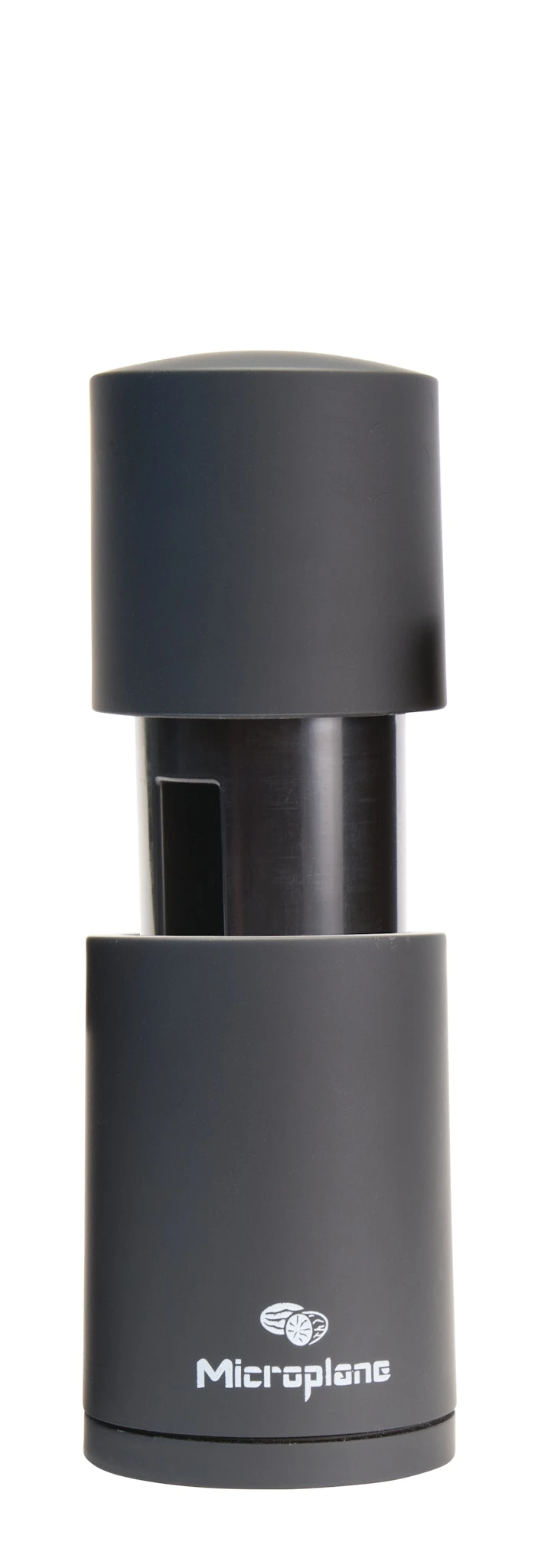 Die Muskatmühle 2 in 1 von Microplane ist das neue Must-have für Gewürze. Reiben Sie mit der feinen, photo-geätzten Edelstahlklinge -Made in USA -harte Gewürze wie Muskatnuss, Zimt, Tonkabohnen oder Nüsse mühelos und präzise. Nehmen Sie den Deckel ab, füllen Sie das Gewürz ein. Durch festes Drehen des Deckels im Uhrzeigersinn erhalten sie frische, aromatische, fein geriebene Gewürze im Handumdrehen. In dem Behälter im Deckel können Sie Gewürze aromafrisch aufbewahren und ein praktischer Silikonverschluß vermeidet Gewürzstaub. Erschaffen Sie eine wahre Geschmacksexplosion in Speisen und Getränken. Maße der Mühle: 21,1 cm x 16,2 cm x 16,0 cm