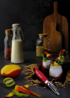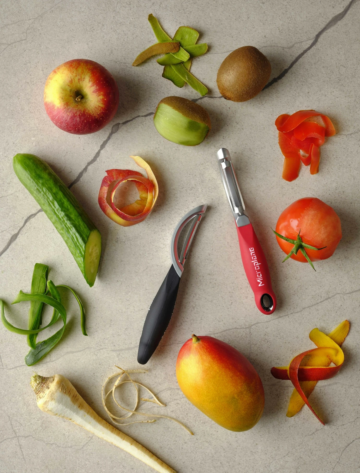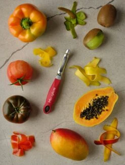 Mit dem Microplane Profi-Schäler mit gezahnter Klinge geht das Schälen sprichwörtlich im Handumdrehen. Das Geheimnis liegt nicht nur in den vielen kleinen Mikrozähnen, sondern auch in der Besonderheit der doppelseitigen Klinge. Tomaten, Kiwis, Pfirsiche, Nektarinen, Mangos, Papayas, Paprika und anderes weiches Obst oder Gemüse kann schnell und gründlich geschält werden. Maße: 18,5 cm x 2,5 cm x 2,5 cm