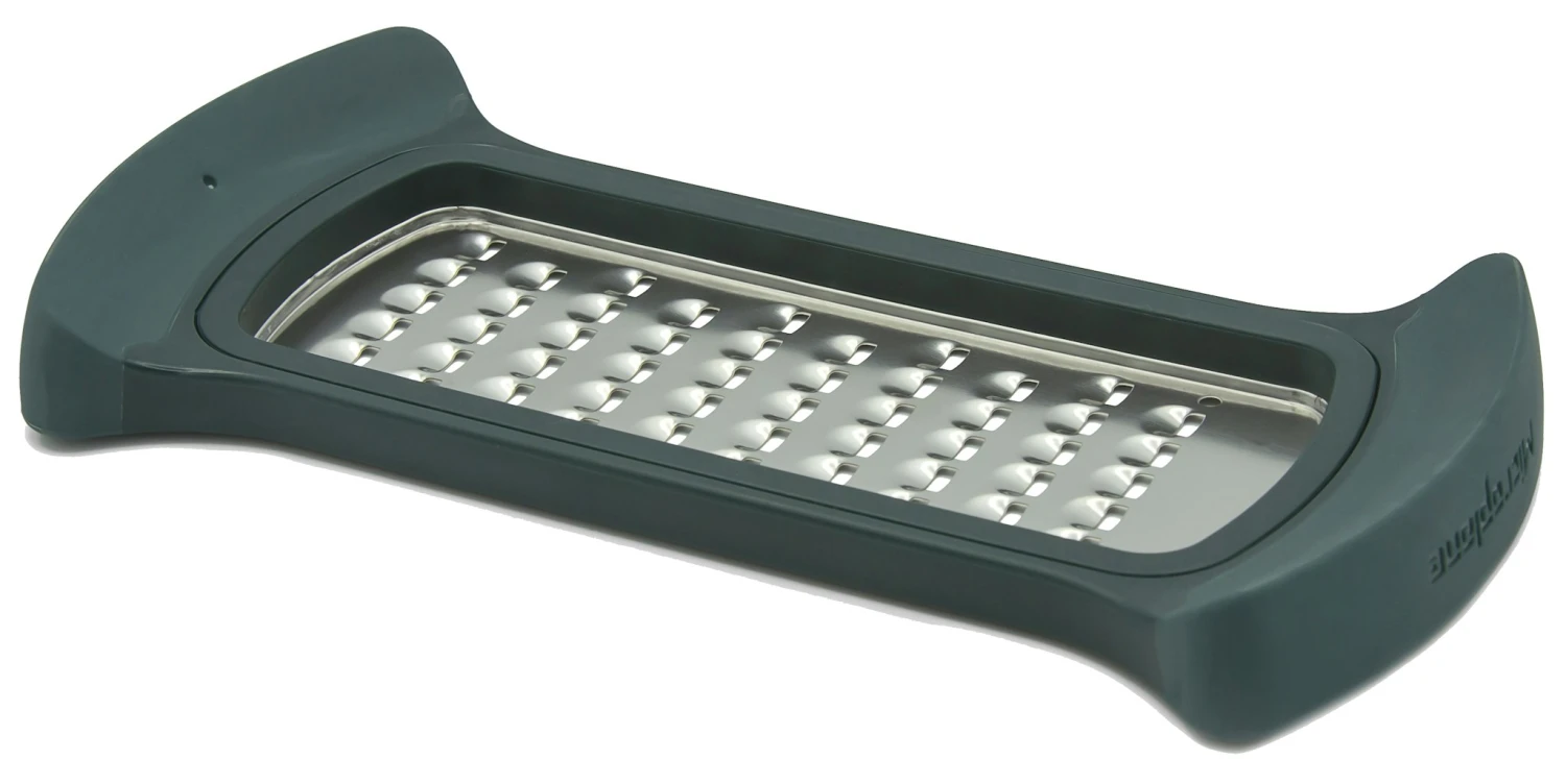 Die Schüsselreibe mit der sehr groben Klingenausführung macht das Reiben von Gemüse, Obst und Käse, nicht nur mühelos, sondern auch einfacher. Die besondere Form der Reibe mit den abgerundeten Soft-Touch und antirutsch Griffen auf beiden Seiten erlaubt es, diesen praktischen Küchenhelfer entweder direkt auf die Schüssel (bis zu 16 cm Durchmesser) zu legen oder damit waagerecht, beziehungsweise senkrecht in dem runden Gefäß zu arbeiten. Dank des ergonomisch geformten Soft-Touch Griffs verrutscht beim Arbeiten nichts und das Geriebene fällt direkt in die Schüssel.