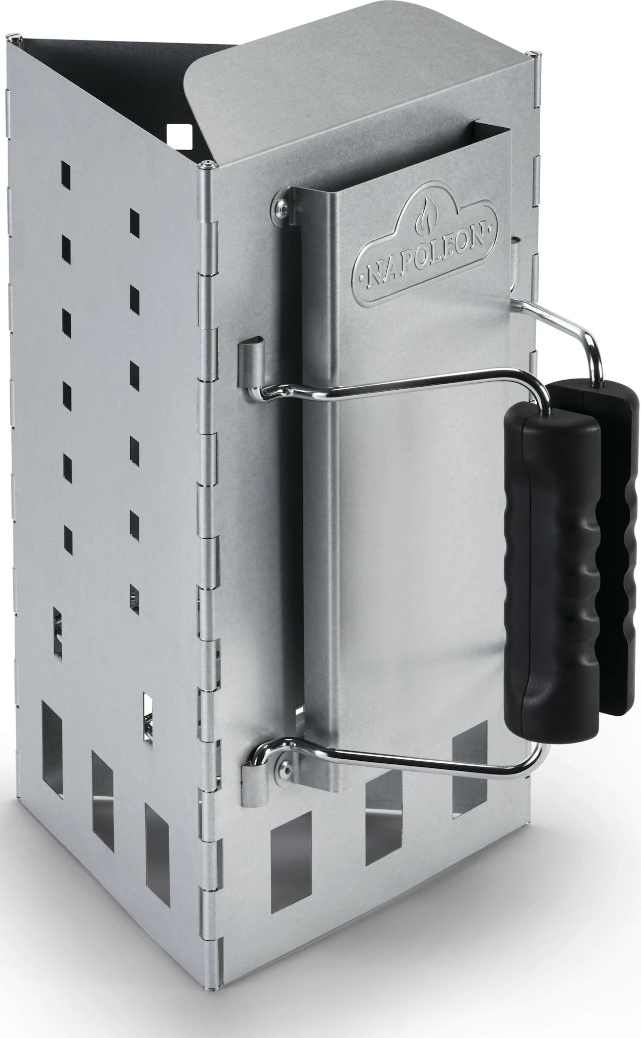 Mit dem dreieckigen Anzündkamin von Napoleon erzielen Sie eine maximale Luftzirkulation für 30% schnelleres Anzünden. Holzkohle tritt durch eckiges Design punktgenau aus. Das integrierte Schutzschild schützt Ihre Hand beim Einfüllen vor Hitze.