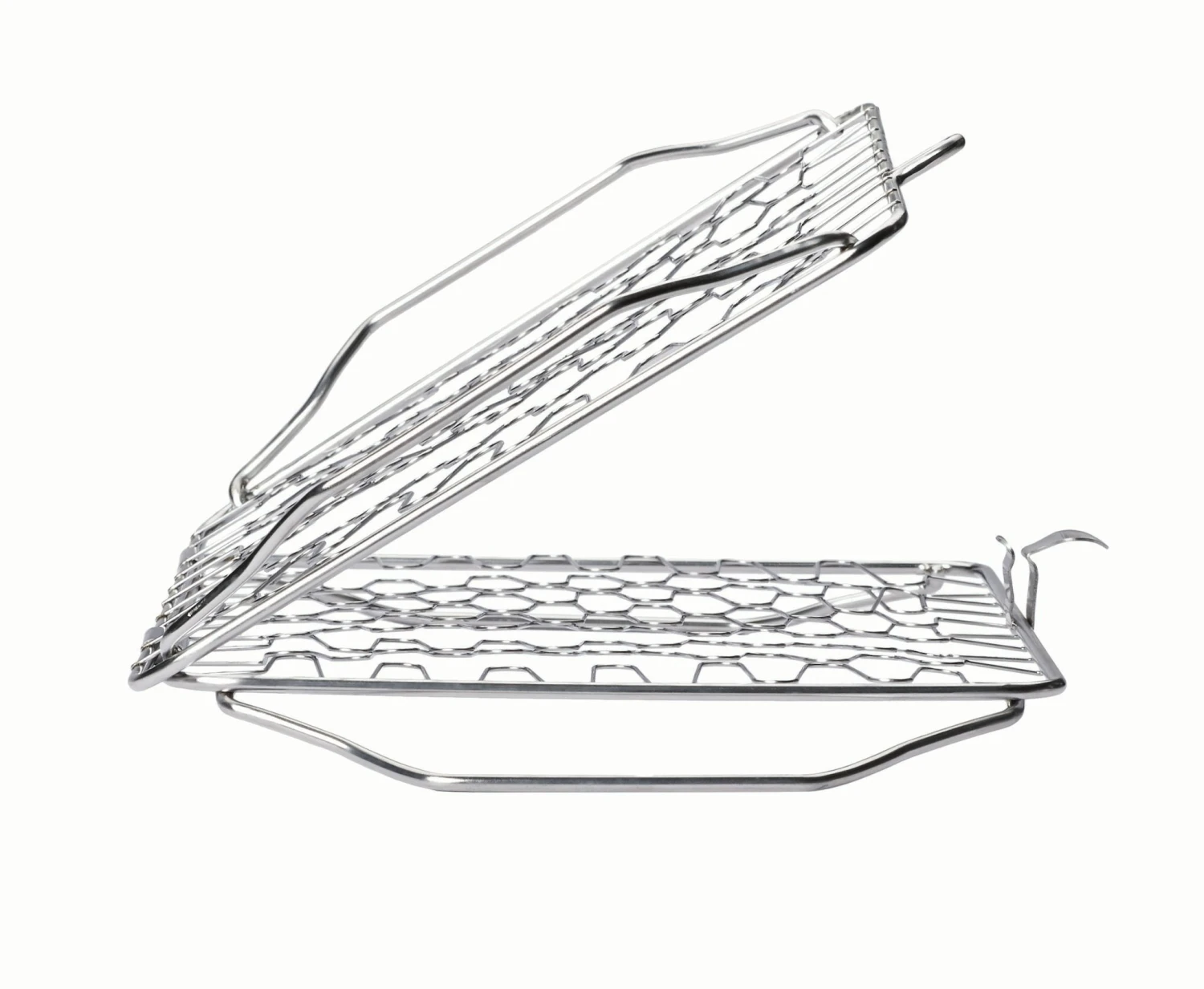 Der klappbare Fisch- und Gemüsehalter von NAPOLEON ist besonders für empfindliches Grillgut geeignet. SpannenSie einfach den Fisch oder das Gemüse inden Halter ein und legen Sie diesen auf den Grill. Das Grillgut kann dann später komplett mit Halter gewendet werden. Der Edelstahl-Halter bietet sich vor allem bei Grillgut an, dass normalerweise Probleme beim Drehen verursacht (zerfällt oder zerbricht).