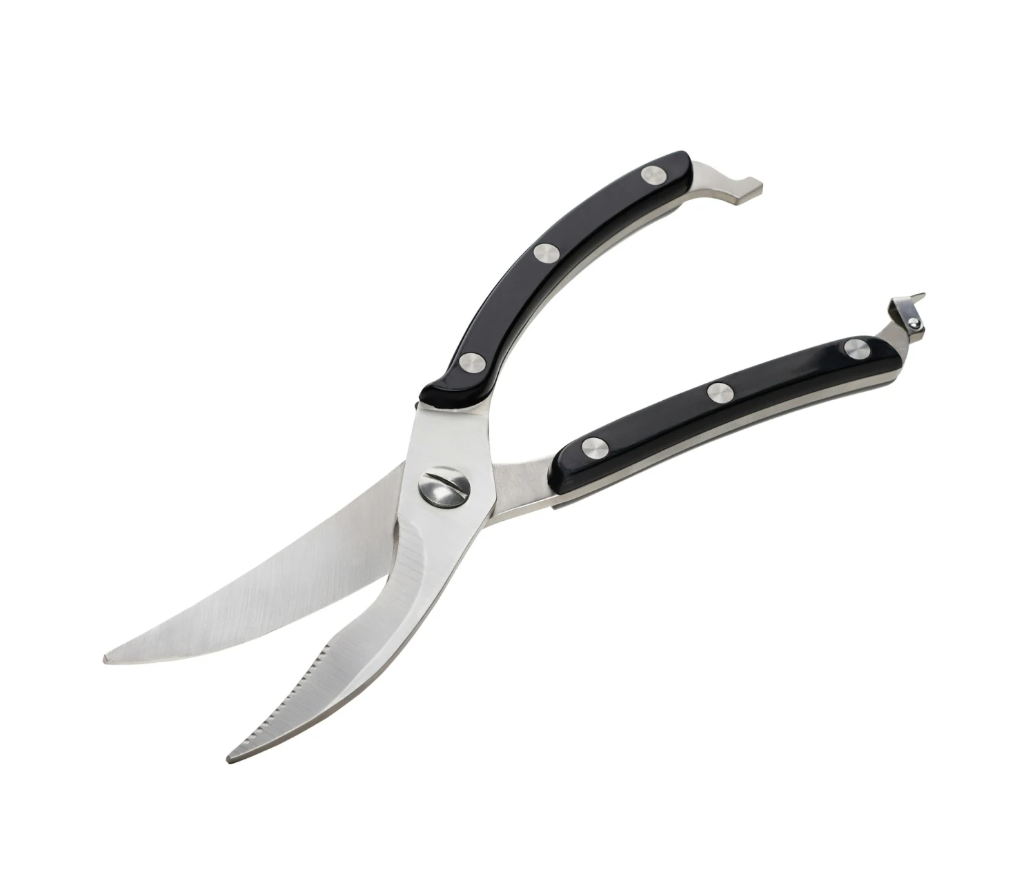 Die NAPOLEON Geflügelschere aus hochwertigem Edelstahl gefertigt, zerteilt mühelos Fleisch, Gelenke und sogar Knochen. Eine eingebaute Verriegelung lässt die NAPOLEON Geflügelschere sicher und platzsparend aufbewaren. Die Schere ist sowohl von Linkshänder als auch von Rechtshänder bedienbar. Sie können mit dieser Schere nicht nur Geflügel zerteilen, sondern auch Spare Ribs, Krustentiere und andere Arten von Fleisch. Die Geflügelschere von NAPOLEON ist ein echtes Multitalent.