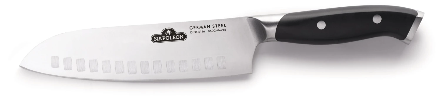 Ein Santoku Messer wird auch das Messer der drei Tugenden genannt. Diese Bezeichnung beschreibt seine enorme Vielseitigkeit. So schneidet auch das Napoleon Santoku Messer mit Leichtigkeit GemĂĽse, Fleisch oder Fisch.