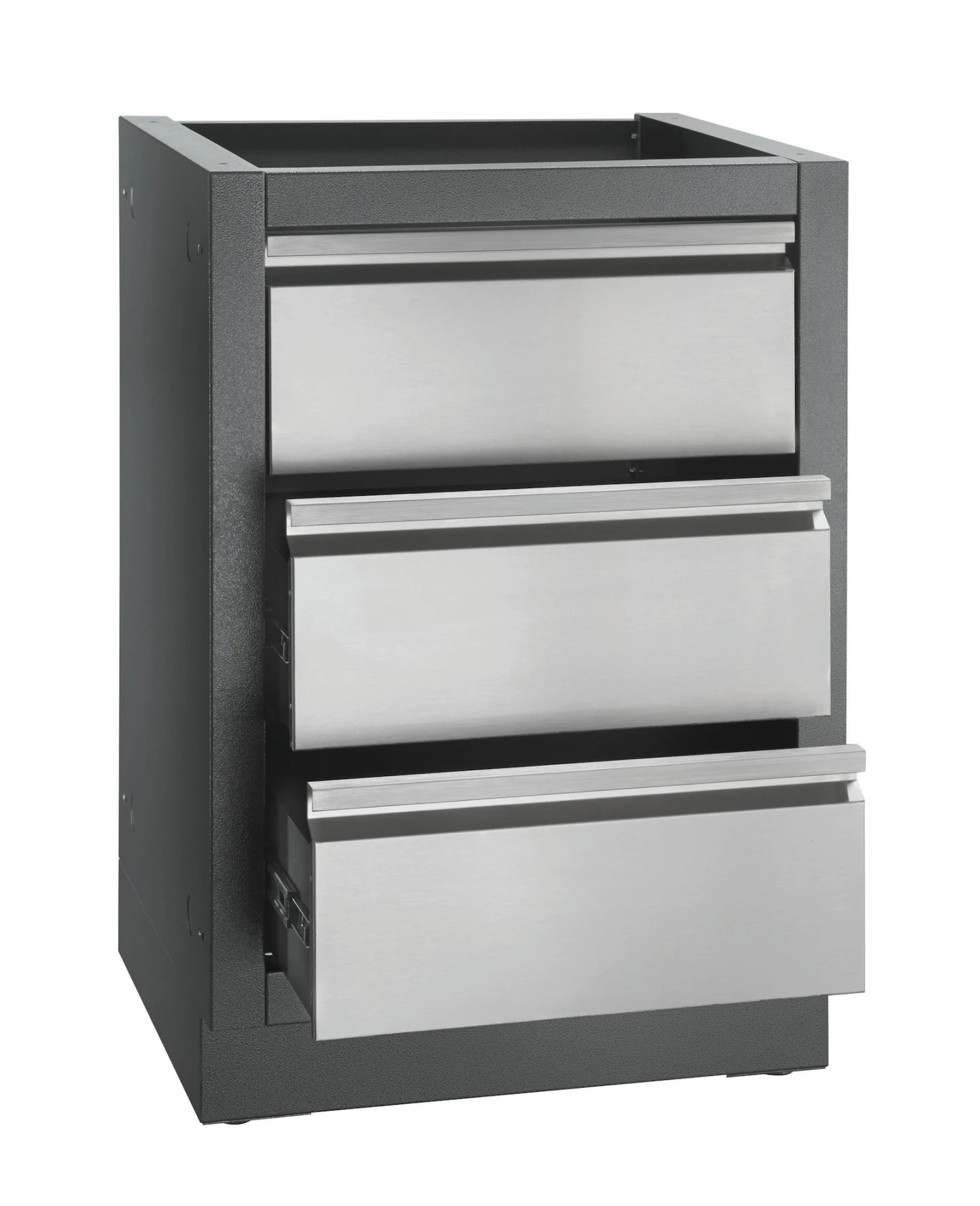 Die NAPOLEON Schubladenschrank (2 Laden + Blende) ist eines von vielen Modulen fĂŒr Ihre individuelle Outdoor-KĂŒche. Die Schubladen stellen viel Platz fĂŒr Ihr Grillzubehör bereit und sind dank Rollenlagerung leicht ausziehbar. Die obere Blende ermöglicht es Ihnen verscheidene Module einzubauen (z.B. eine SpĂŒle oder einen Seitenbrenner).