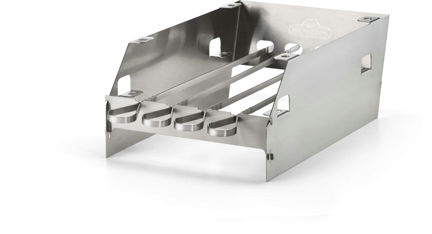 Multifunktionaler Windschutz. Auch bei stärkerem Wind brennt die Sizzle Zone stabil. Der Grillrost kann in drei weitere Positionen verstellt werden. Die Blende vorne kann geklappt werden so dass der Zugang mit der Grillzange erleichtert wird. Zudem ist eine Spießhalterung integriert die es ermöglicht über der Sizzle Zone Grillspieße ohne direkten kontakt zum Rost zu grillen. Rost ist nicht im Lieferumfang enthalten. 4 Edelstahl-Spieße inklusive.