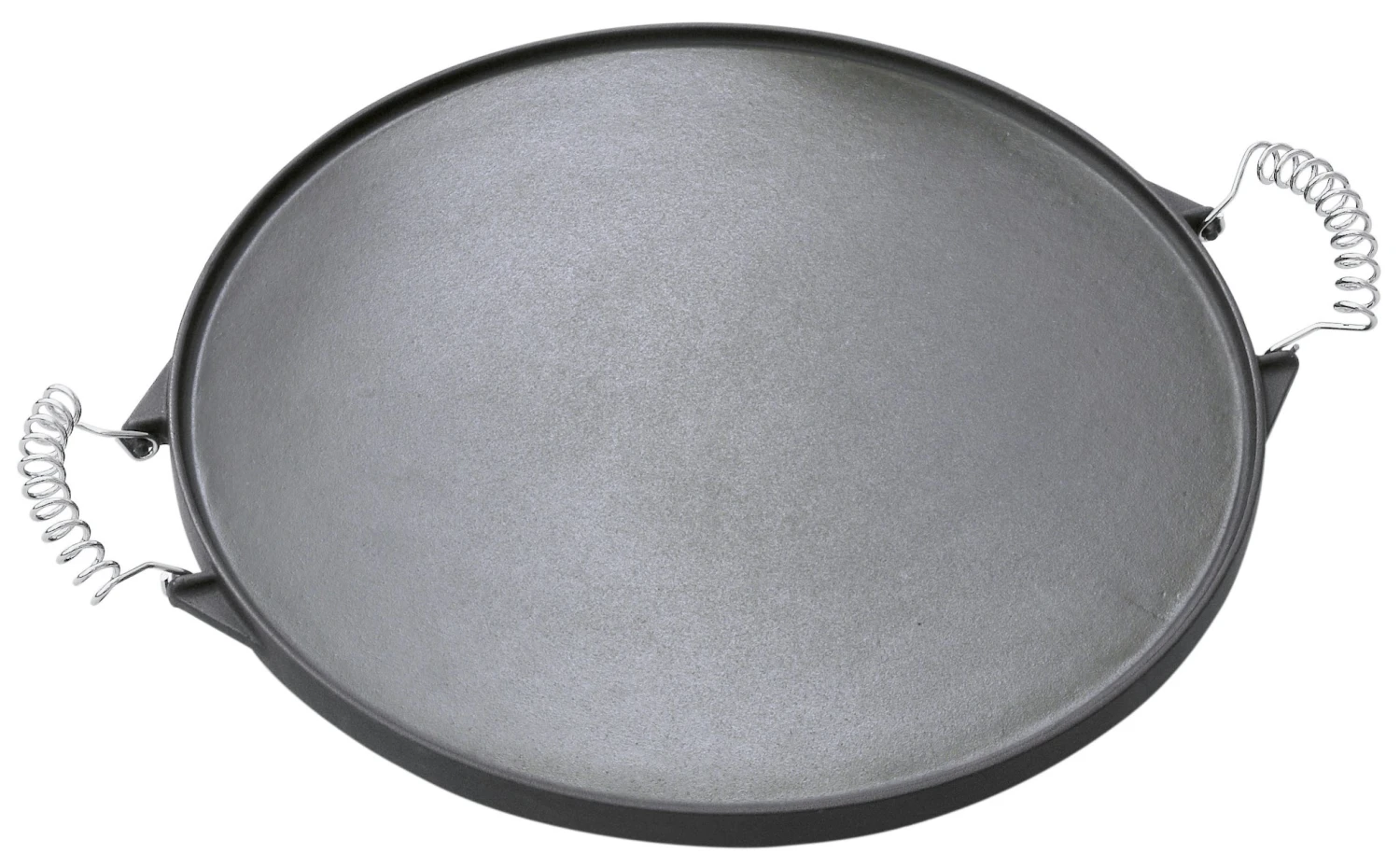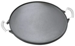 2-seitige Grillplatte aus Gusseisen mit optimaler Hitzespeicherung und -verteilung: gerippte Seite fĂŒr Kurzgebratenes, flache Seite u. a. fĂŒr Eierspeisen und köstliche CrĂȘpes.