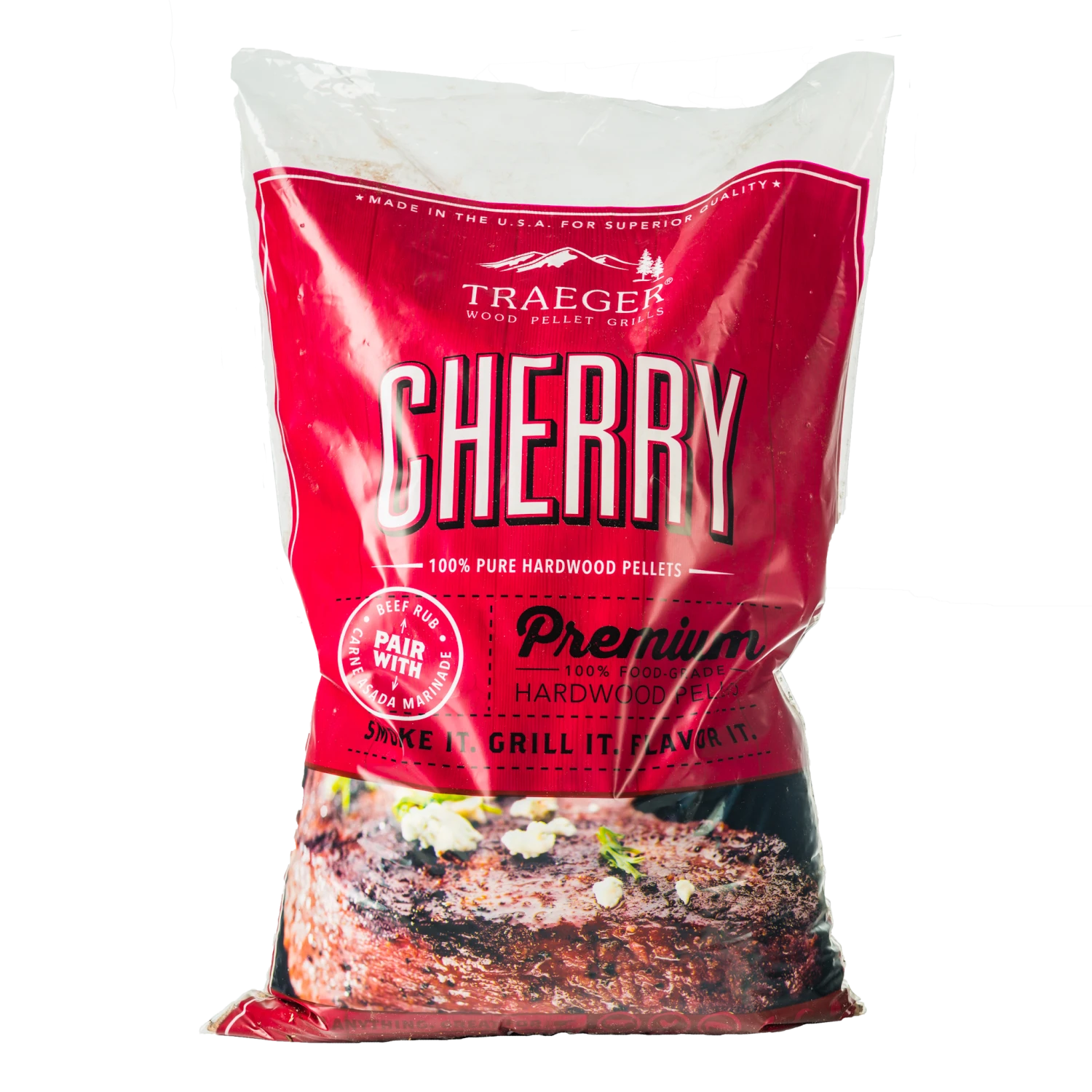 Mit den Kirsche Hartholz Pellets von Traeger veredelt Ihr Euer Grillgut auf natĂŒrliche Weise mit einem subtil sĂŒĂen, fruchtigen Geschmack.