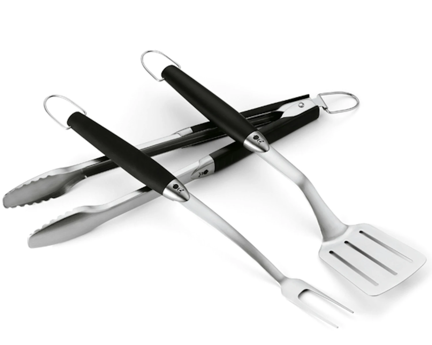 Das Weber 3-teiliges Grillbesteck Set wird aus hochwertigem Edelstahl gefertigt. Es besteht aus den drei meist genutzten Grillzubehör Artikel. Folgende Utensilien sind im Set enthalten: Grillzange, Wender und Gabel. Alle Artikel wurden mit schwarzen Kunststoffgriffen, fĂŒr bequemes und angenehmes Handling, ausgestattet und erfĂŒllen somit hohe AnsprĂŒche und glĂ€nzen durch eine ĂŒberzeugende Verarbeitung.