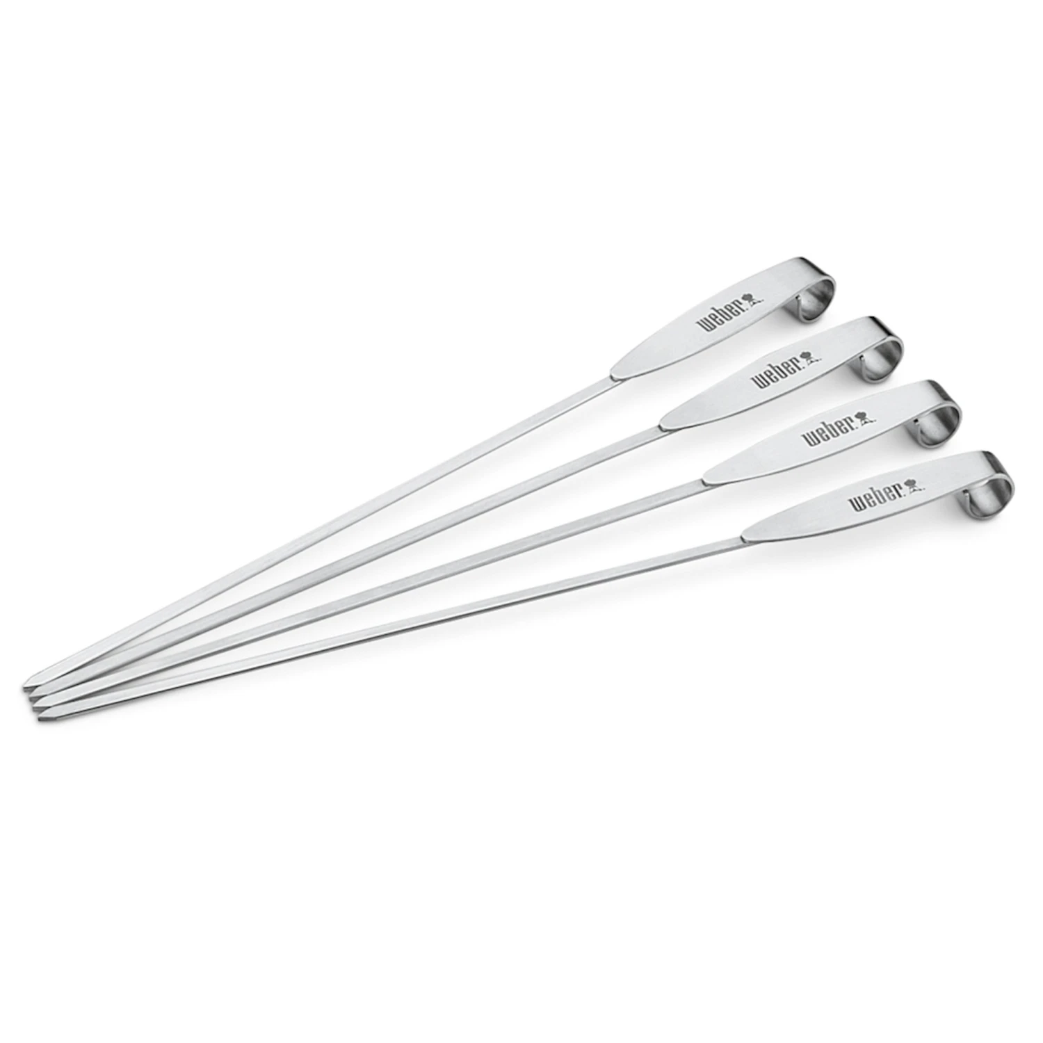 Das neue Weber Elevations Tiered Cooking System (ETCS) Spieß-Set erweitert Ihr ETCS-System um viele weitere Spieße. Selbstverständlich ist das Spieß-Set aus hochwertigem Edelstahl angefertigt und somit auch spülmaschinenfest. Das ETCS-System ist passend für die Weber Spirit 300-Serie (ab Modell 2013), Genesis und Summit. Die Länge der Spieße beträgt 34 cm. Lieferumfang: 1 Set = 4 Spieße