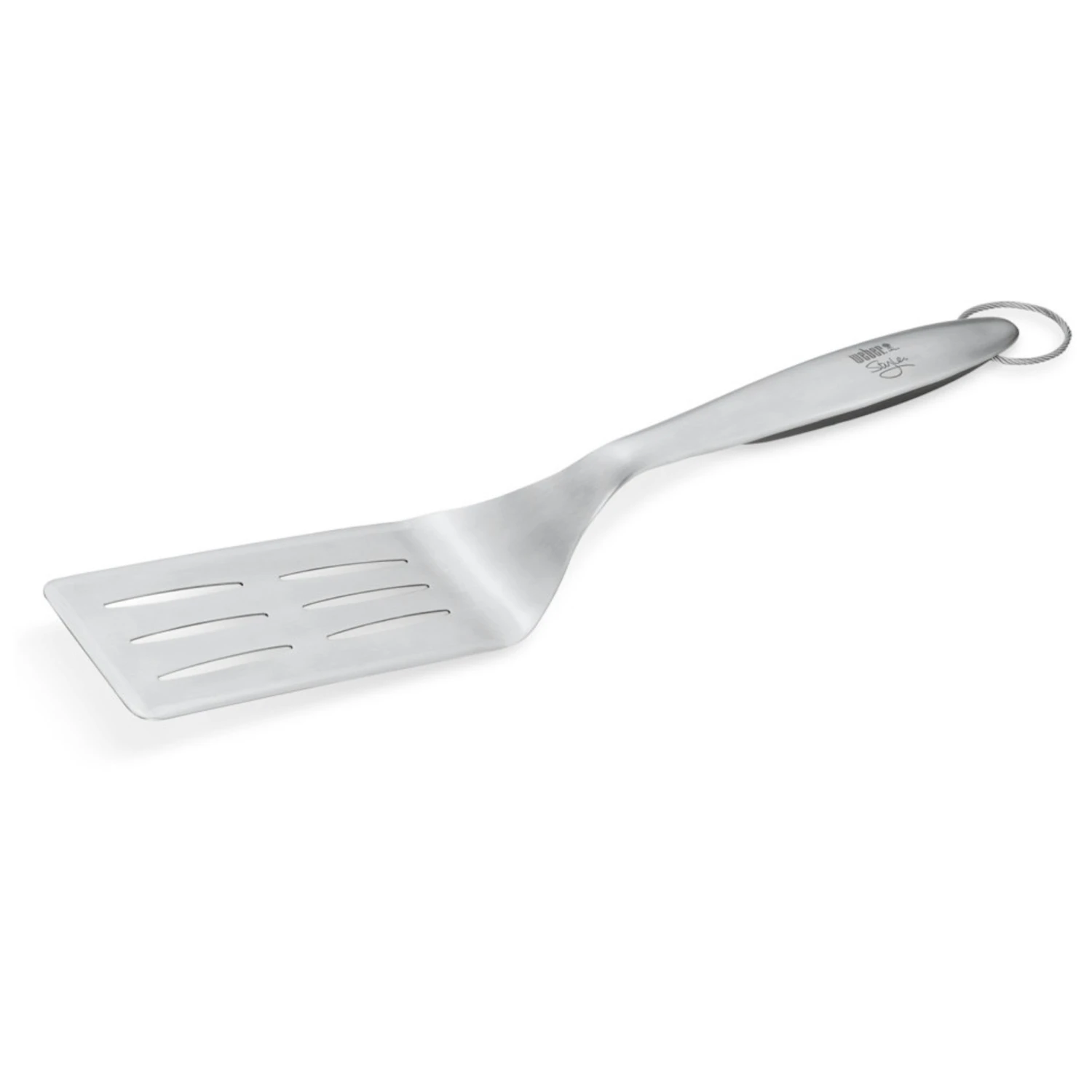 Der Weber Style Wender ist aus hochwertigem Premium- Edelstahl gefertigt. Mit dem 45,8 cm langen Wender lassen sich problemlos auch groĂe StĂŒcke Ihres Grillgutes sicher wenden. Das ist besonders bei Fisch von Vorteil. Das Profizubehör besitzt einen angenehmen Soft Touch Griff und hat abgeschrĂ€gte Kanten, damit Ihre GrillflĂ€che nicht verkratzt wird. Am Griff befindet sich eine praktische Ăse mit der Sie den Wender einfach aufhĂ€ngen können. Der Weber Style Wender ist „spĂŒlmaschinenfest“.